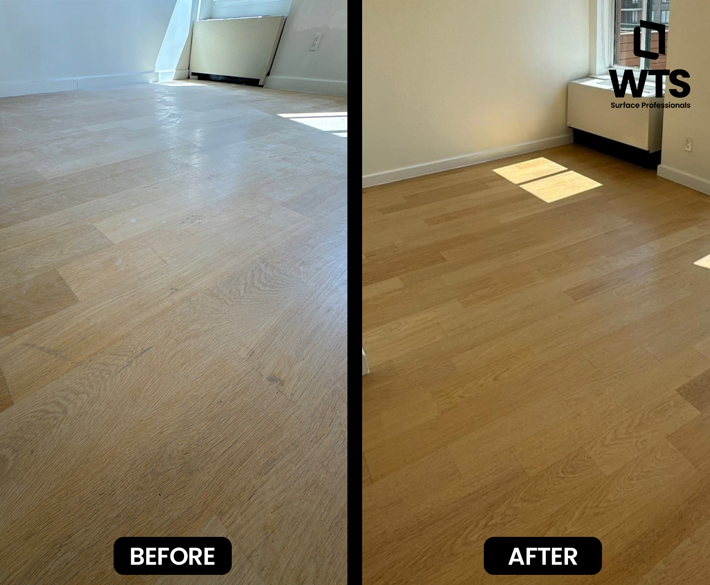 WTS offered a smarter solution. We repaired and refinished the existing flooring, extending its life and avoiding the high cost of replacement. On the balconies, we sanded and refinished the surfaces, making them look new, durable, and inviting for future tenants.